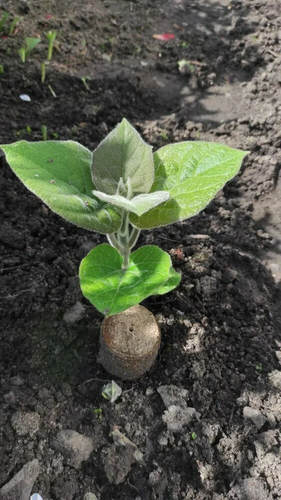 Le piantine di paulownia hanno un aspetto particolare e non assomigliano alle piantine di altri alberi.